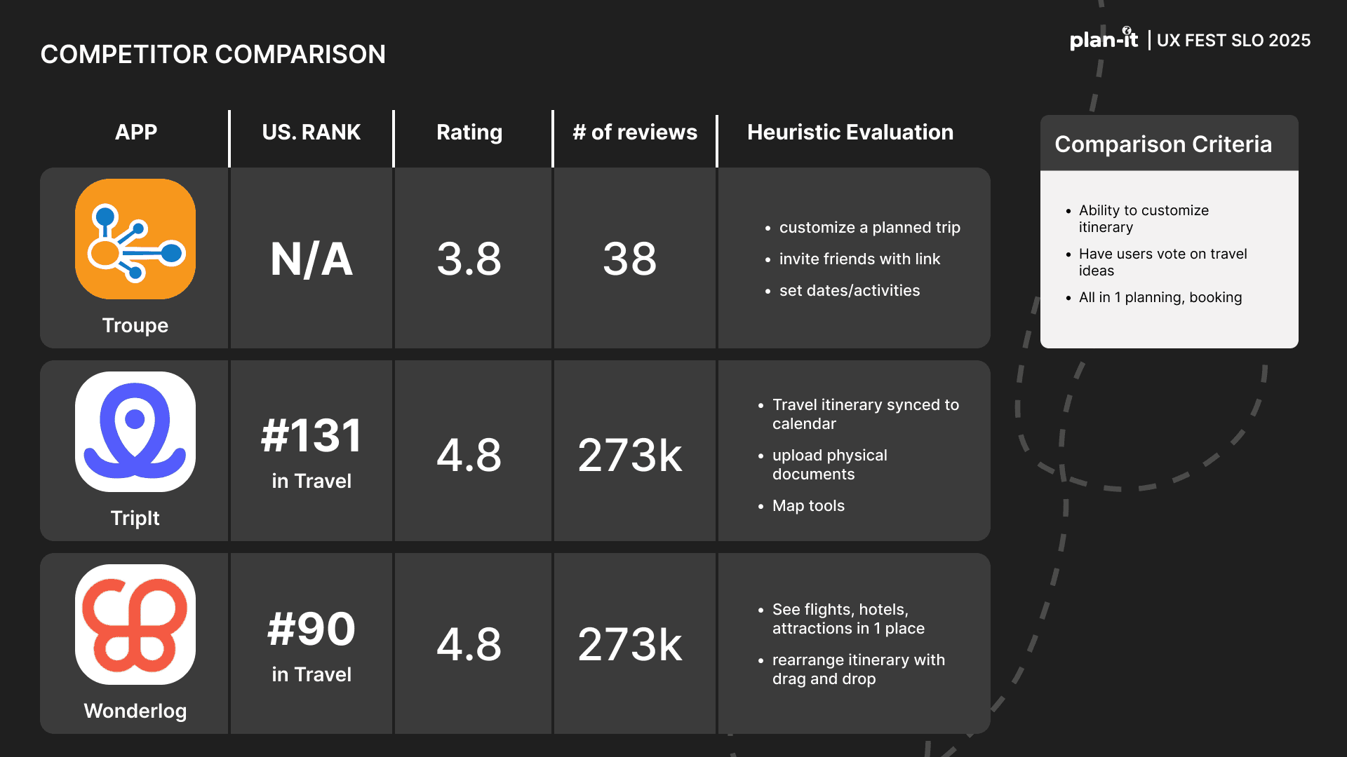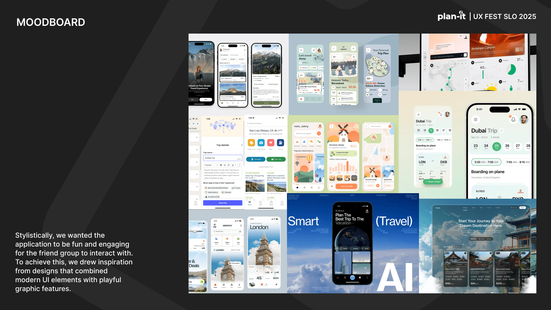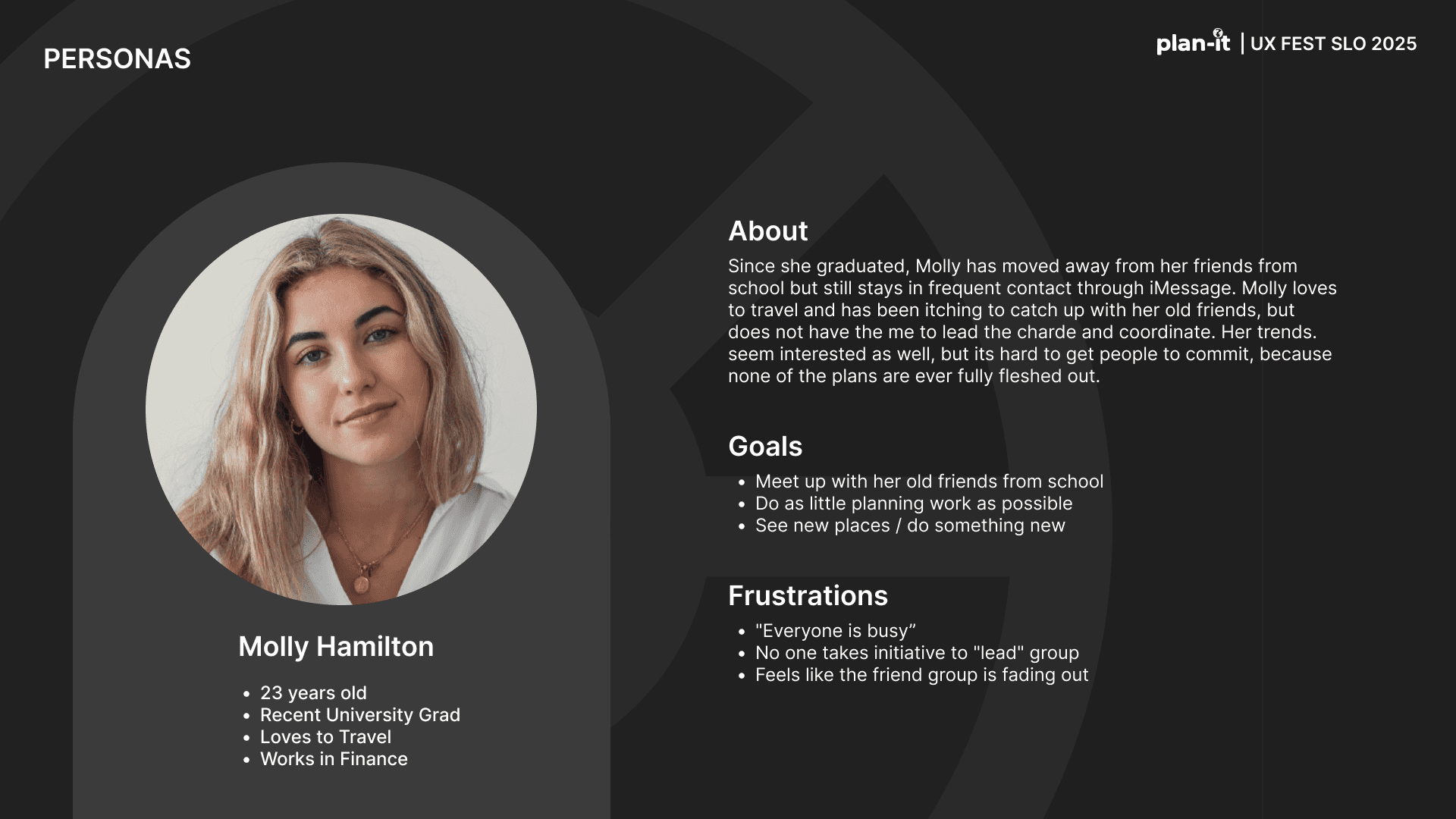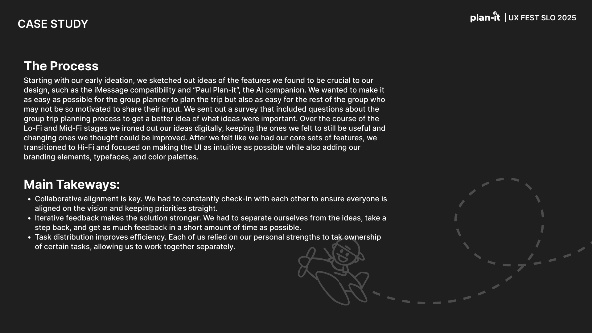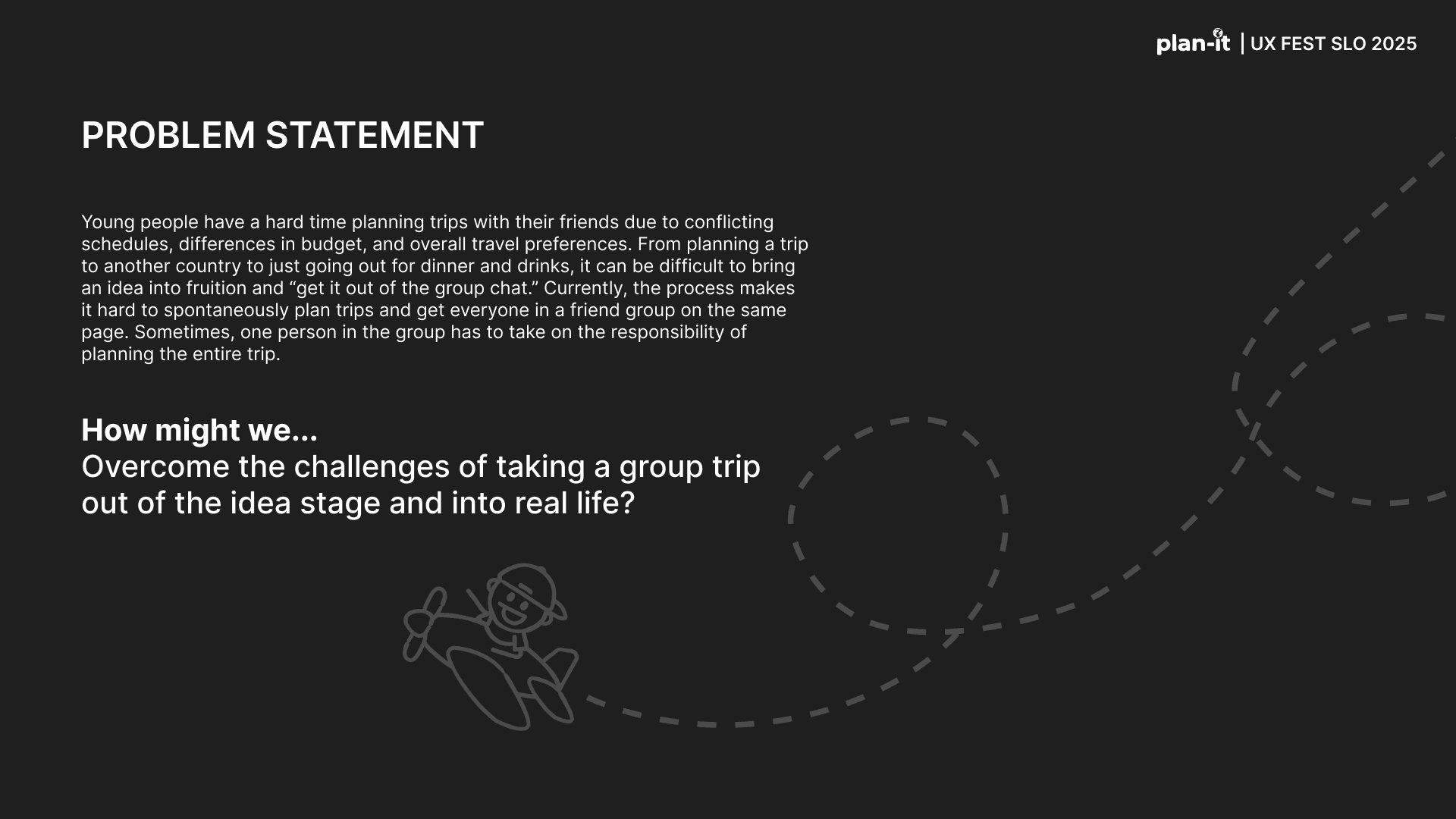 Plan-it is an original app created as part of the UX-Fest SLO 24-hour design competition, and won 2nd place out of 40+ competing teams. The prompt was to incorporate AI in an app that would help users travel from A to B. Plan-it helps groups execute travel plans in a low stress environment, embedded into iMessage.