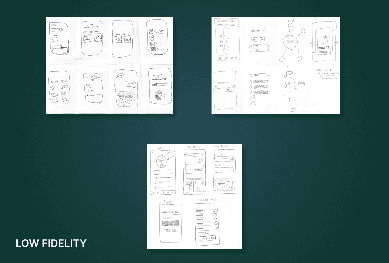 We started with Crazy 8s in order to brainstorm rough ideas. We played around with the UI layout and logo design during the mid-fidelity before finally picking our final designs.